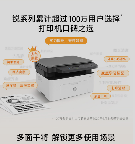 惠普(HP)136w 銳系列黑白激光多功能一體機(jī) 三合一 打印復(fù)印掃描 M1136升級款無線版