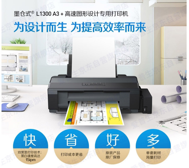 當(dāng)前位置: 首頁(yè) > 打印設(shè)備 > 噴墨打印機(jī) > 愛普生(EPSON)L1300 A3+大幅面墨倉(cāng)式打印機(jī)工程CAD圖形設(shè)計(jì)專用彩色雙黑打印機(jī) 工業(yè)設(shè)備