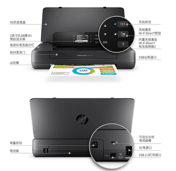 惠普(HP)OfficeJet 200 A4 彩色單功能移動便攜式打印機(jī) 無線打印